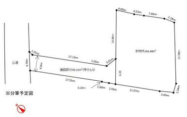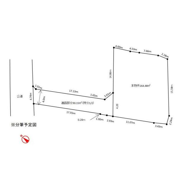 | 土地面積 | 公簿 264.48㎡ | 坪数 | 80.00坪 | 坪単価 | 19.75万円 |